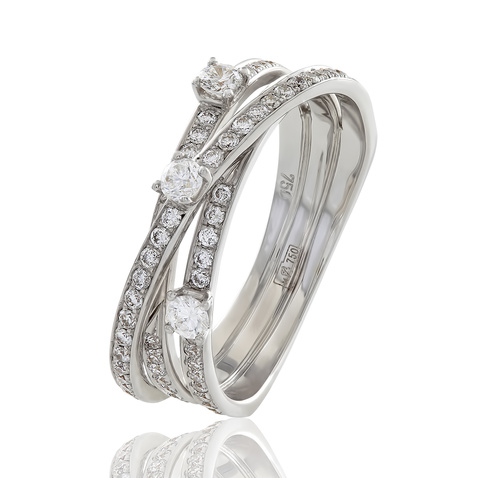 Кольцо из белого золота сборное из нескольких дорожек с россыпью якутских бриллиантов